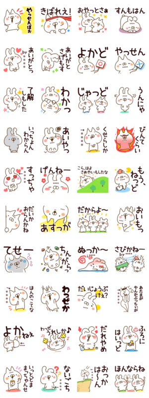 名前スタンプシリーズのねことうさぎ/専用14/***の部分にお好きな言葉を入れられます♪入力後、右上の「完了」をタップするのをお忘れなく。鹿児島弁/薩摩弁/山田まぽん作