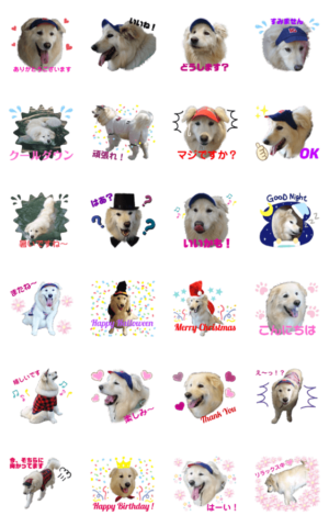 LINE Creators Studioでつくったスタンプです。サモエドとゴールデンのハーフの男の子です。KUMA より発売