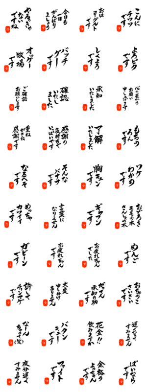 守さん用死語入り筆文字敬語 スタンプ画像一覧