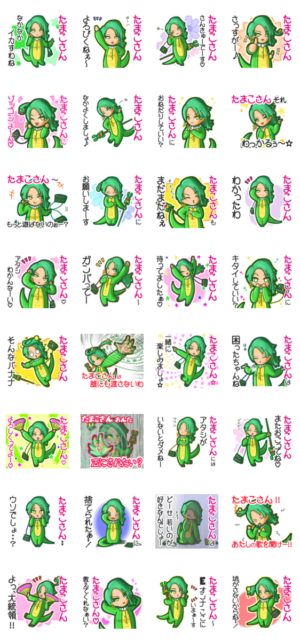 ゆっけ。が贈る【たまこさん】に『送る用』名前スタンプ31です。友達や恋人とのやりとりに。《きぐるみじょし》04「バブルなヘビねーさん」です。