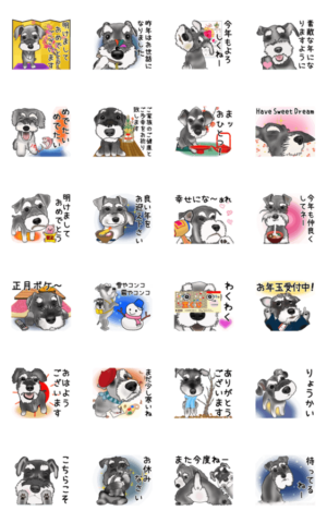 シュナウザー犬の(年末年始用)動くスタンプです!