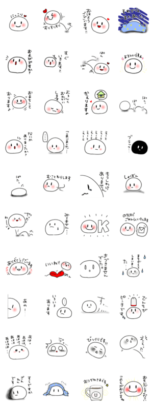 少しつぶれかけたおもちっぽい生き物のスタンプです。sakku より発売