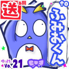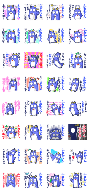 ゆっけ。が贈る【ふみおくん】に『送る用』名前スタンプ21です。友達や恋人とのやりとりに。《ゆっけ。のアニぱ!》05「てきとーなペンギン」です。