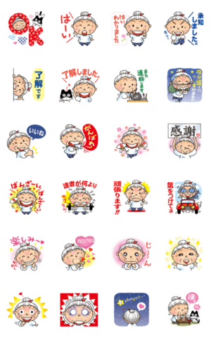 よねおばあちゃんがキャラクターのスタンプです。日常的によく使われるメッセージ集です。