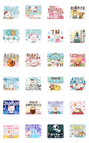 大人のためのねこが可愛く動く冬の日常使えるスタンプです。ほっこりと心温まるデザインになっております。クリスマスや新年の挨拶にも使えます。little lion house より発売