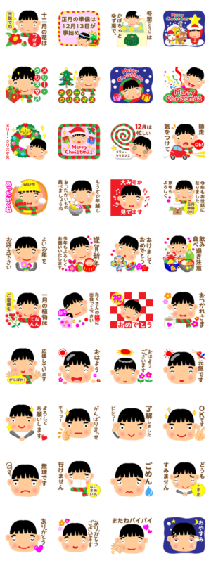 元気な男子のクリスマス年末年始の挨拶 スタンプ画像一覧
