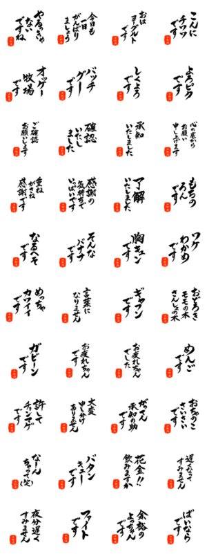 中野渡さん用死語入り筆文字敬語 スタンプ画像一覧