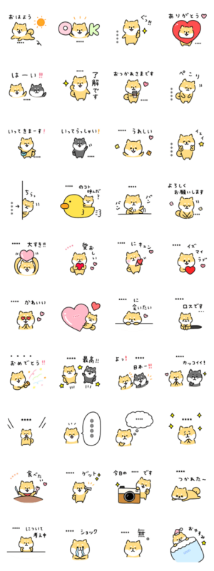ゆるふわな柴犬が可愛いスタンプ。たくさん種類あって、どれ使おうか迷っちゃいますね。