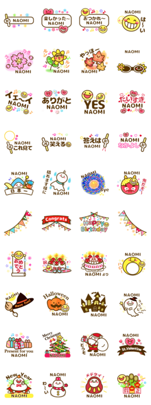 NAOMI❤なおみ❤ナオミ 名前/ちゃん/あだ名。直美等/スマイルにこまるで、写真や動画に!イベント/お祝い/誕生日/クリスマス/ハロウィン/お正月等❤探【○○○usa】作:usakazu