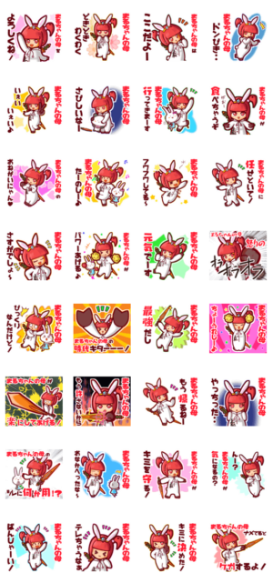 ゆっけ。が贈る【まるちゃんの母】用名前スタンプ12です。《きぐるみじょし》01「うさぎなミコちゃん」と親友の「ガルうさ」です。