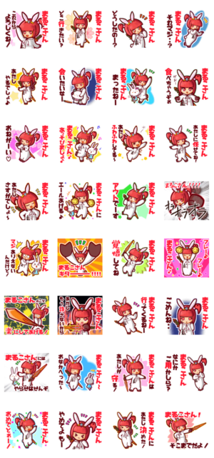 ゆっけ。が贈る【まるこさん】に『送る用』名前スタンプ28です。友達や恋人とのやりとりにぜひ。《きぐるみじょし》01「うさぎなミコちゃん」と親友の「ガルうさ」です。