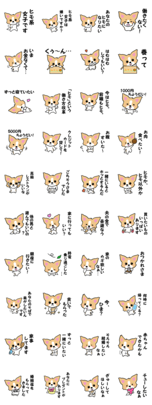 専業主婦やヒモになりたい女性用。「社長や医者などのお金持ちの男性」「年上の男性」「気になっている男性」「パパ」に送ってキュンとさせてヒモにしてもらう時に大活躍。ひもチワワ♂ より発売