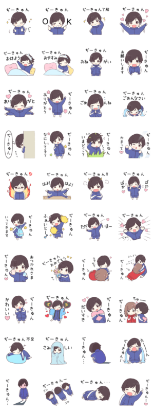 【ぢーきゅん】に送る専用のジャージくんスタンプ第1弾です。大好きな「ぢーきゅん」に呼びかけます。