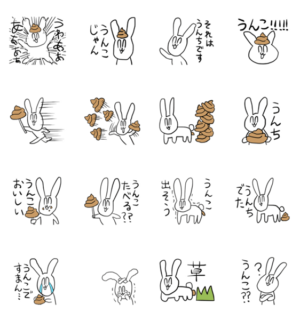 うんこ/うんちが大好きなうさぎのスタンプです。クソリプしたい人へヤシ野うき より発売