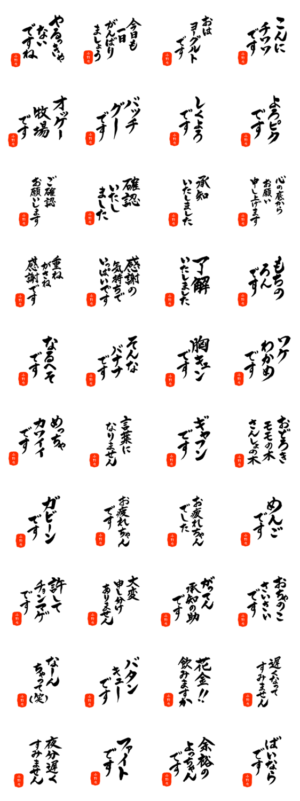 小野原さん用死語入り筆文字敬語 スタンプ画像一覧