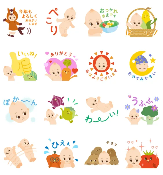 おなじみキユーピーちゃんとヤサイたちの日常づかいにピッタリなスタンプセットです☆