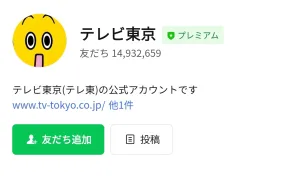 下のリンクからLINEを起動させて、「テレビ東京」のアカウントと友だちになると無料でスタンプがGETできます☆