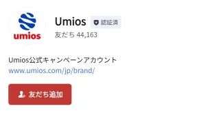 下のリンクからLINEを起動させて、「Umios」のアカウントと友だちになると無料でスタンプがGETできます☆