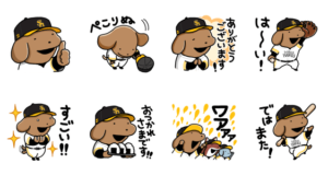 PayPay銀行の「ホークスファンサポート預金」を記念した「小犬のこいぬ」コラボスタンプ。SoftBank HAWKSのユニフォームを着た小犬のこいぬのスタンプでLINEトークを盛り上げよう!配布期間:2026/04/29まで