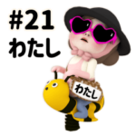 【わたし】専用のスタンプです。ピンクタオル#21は「動...